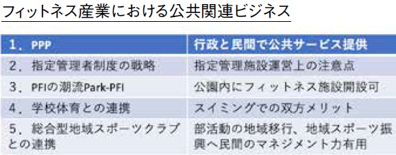近年、注目されている公共関連ビジネス、パーソナルトレーニングジム、介護予防(一般介護予防事業)について、新しい節を追加し、実務者に執筆いただいてます。その一部を紹介します。